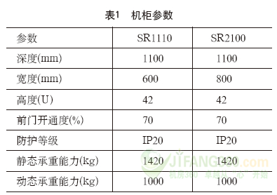 机柜产品的主要参数如表1所示。服务器机柜开孔度为70%,防护等级为IP20,动态承重能力是1000kg,静态承重能力为1420kg。