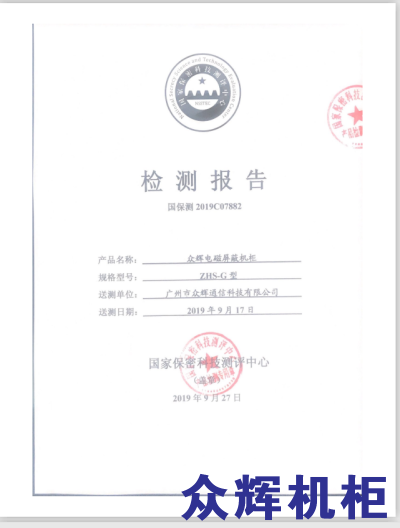 众辉屏蔽机柜2019年保密局C级认证新证出炉了